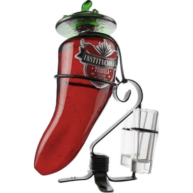 Institucional Tequila Gold Chili Pepper Decanter with 2 Shot Glasses 750mL